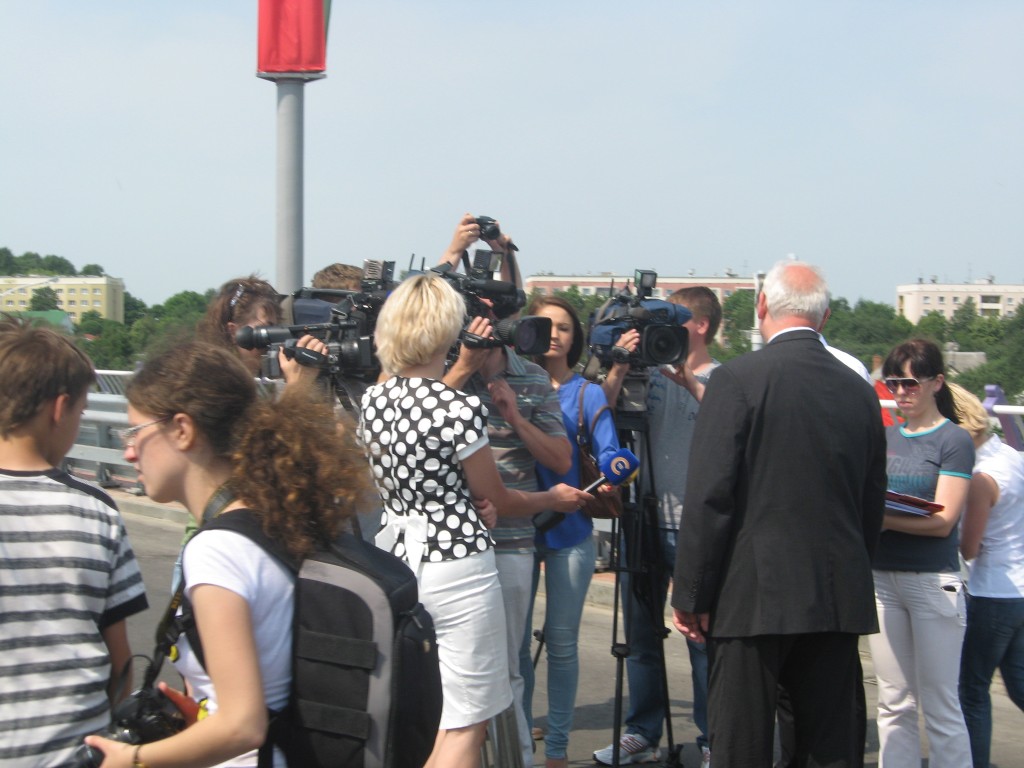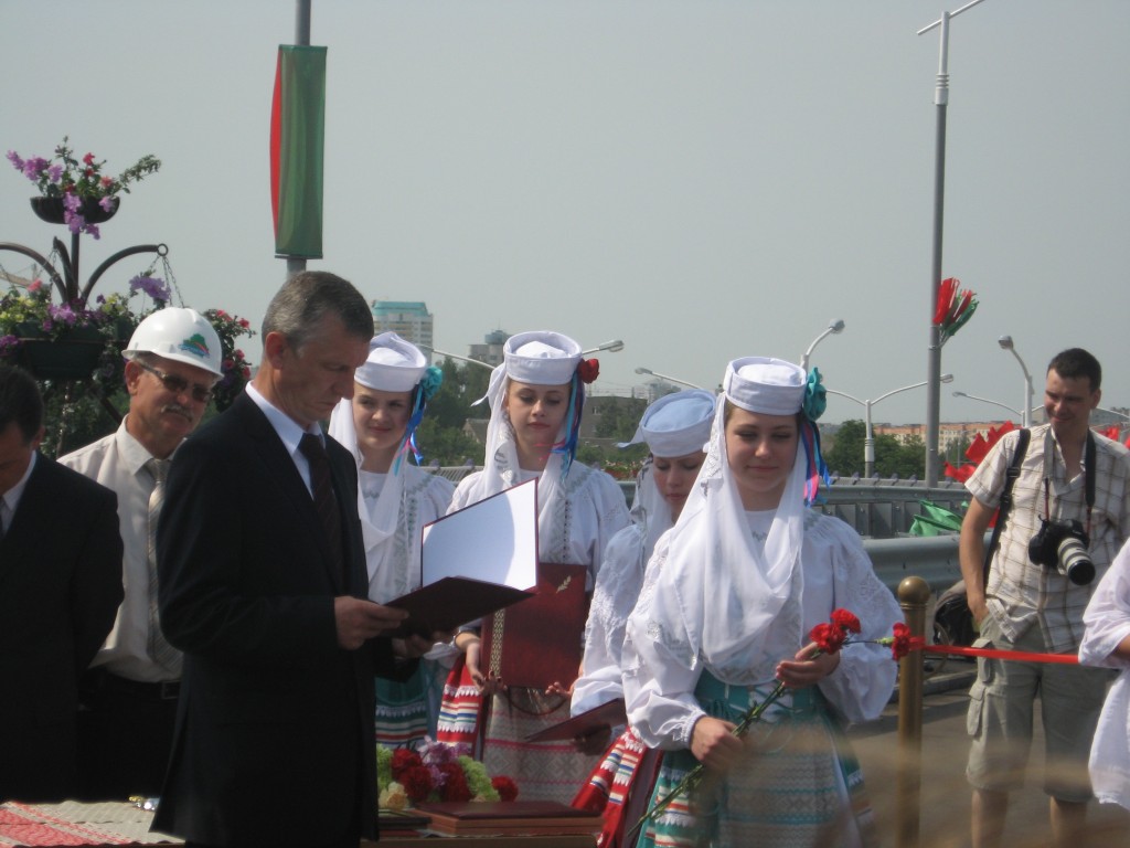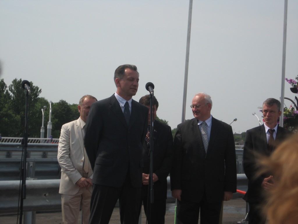 Мэр города Николай Ладутько вместе с руководителями организаций торжественно перерезал красную ленточку. После этой церемонии, оживленно началось автомобильное движение. Водители, которым первыми довелось проехать по этому мосту, радостно сигналили, отдавая честь строителям.