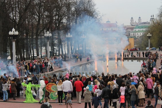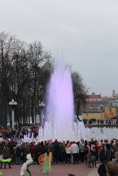Открытие сезона фонтанов с шумом прошло 30 апреля в Минске. Действие происходило на площадке около Театра оперы и балета, на которой находится один из самых больших и красивых фонтанов Минска. Большое количество людей собралось посмотреть на это зрелище.