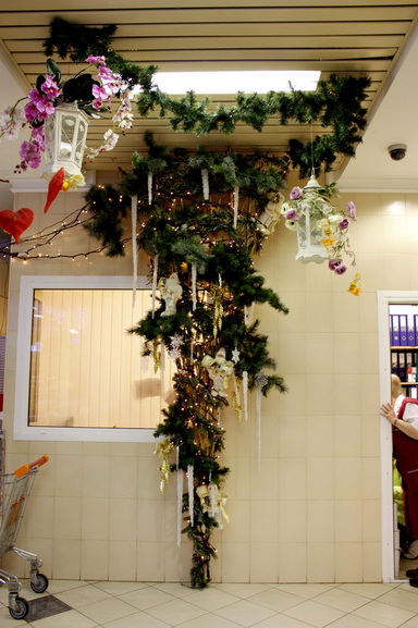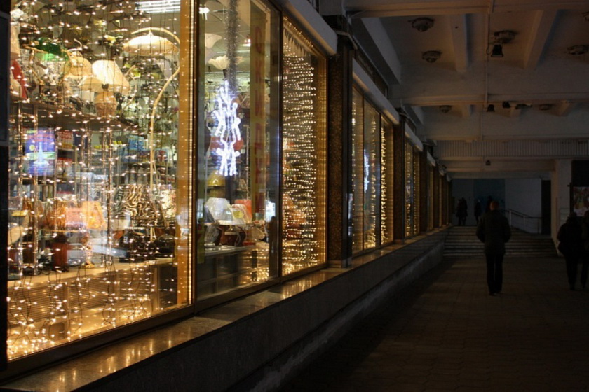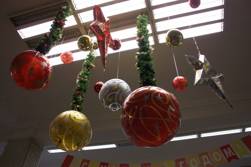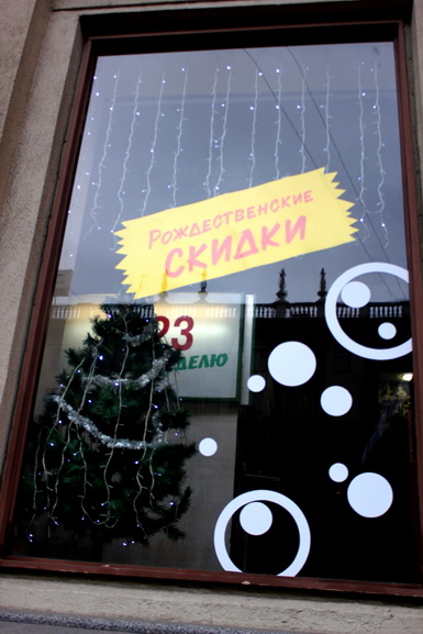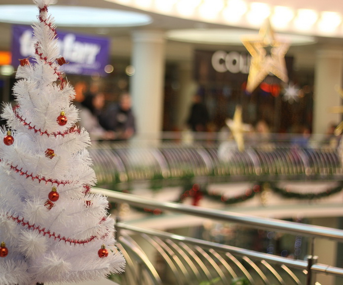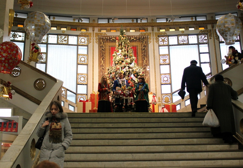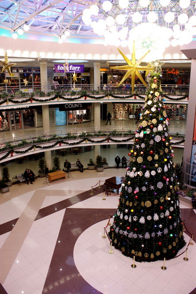 Торговый центр «Столица» очень порадовал. Огромная ёлка посреди первого этажа почти достигает стеклянного купола. Украшена она ярко и красиво. Также почти все магазины в столице украсили свои витрины, так что выглядит она очень «по-новогоднему».