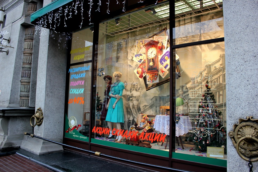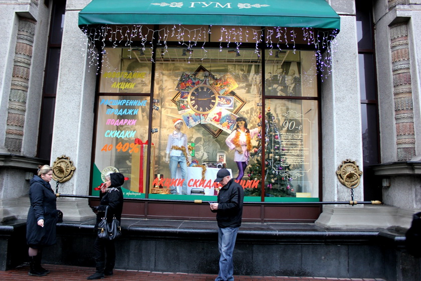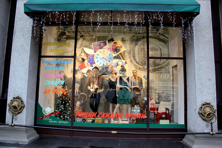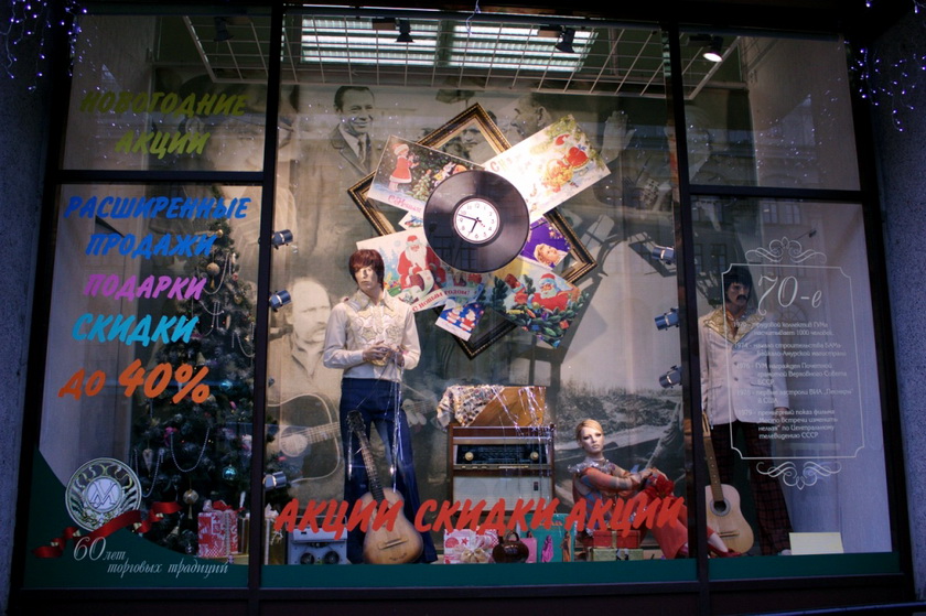 Витрины Гума представили нам изменения моды по годам начиная с 50. Для универсама такое украшение витрин не ново. Почти каждый праздник сопровождается такими витринами, так что Гум оригинальным не показался.