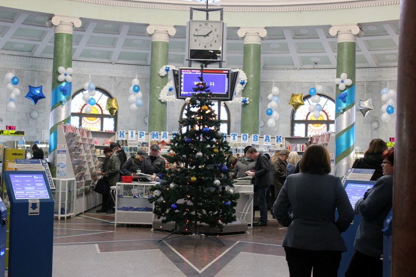 Прожив 17 лет в Минске, мы не подозревали, что здание Главпочтамта на проспекте Независимости является настолько крутой архитектурной ценность, что фотографировать там запрещено. Пришлось изображать из себя иностранцев, которые судорожно щелкают фотоаппаратами, не понимая ора работниц о запрете. Смотрим фотографии украшенного Главпочтамта.