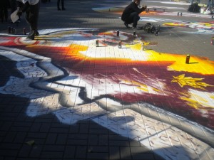 Пасля выяснення адносін, мы вырашылі паехаць у парк Горькага, у якім праходзіў першы ў Беларусі фестываль 3D малюнкаў на асфальту.