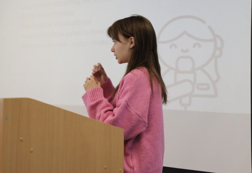 Анастасия рассказала юным абитуриентам о личном опыте, поделилась своими навыками в сфере видеорепортажей. Также привела интересное сравнение репортажа с бургером! «Важно, чтобы всё было на своих местах. Хорошая структура – залог классного материала», – отметила телеведущая.