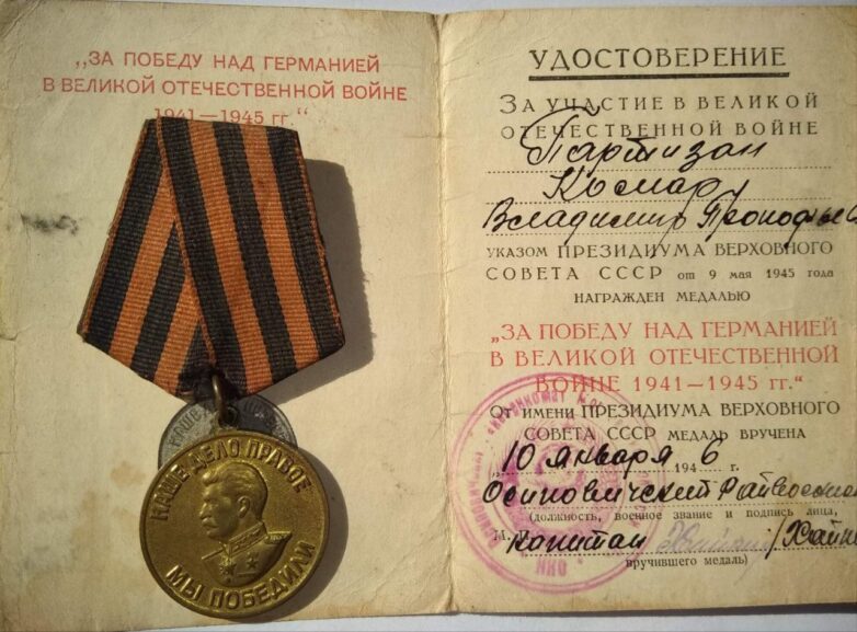 С такой фразы начинал каждый свой рассказ мой прадедушка, активный участник партизанского движения Комар Владимир Прокофьевич. Как и большинство ветеранов, он не любил вспоминать о войне. Но был готов сделать исключение, если ему обещали, что передадут его слова следующим поколениям, не давая им забыть о великом подвиге.