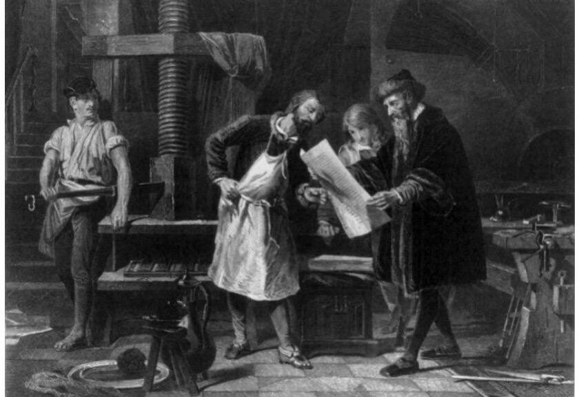 Первая газета, «Acta Diurna» (Ежедневные дела), появилась в Древнем Риме около 59 года до н. э. и содержала официальные постановления и новости. Журналистика зарождалась в Древнем Риме с появлением рукописных новостных бюллетеней (акта диурна), затем получила развитие в Средневековье как канал распространения церковных и государственных новостей. Массовое же развитие журналистики началось после изобретения книгопечатания Гутенбергом, когда появились первые газеты и журналы, такие как «Газетт» Теофраста Ренодо, а в дальнейшем журналистика трансформировалась с появлением радио, телевидения и интернета, став более доступной и массовой. Иоганн Гутенберг и его книгопечатный станок сыграли ключевую роль, позволив массово производить тексты «Газетт» Теофраста Ренодо (XVII век): Французский журналист Теофраст Ренодо считается «отцом современной французской журналистики», он превратил новость в регулярный печатный продукт, создав газету «Газетт».