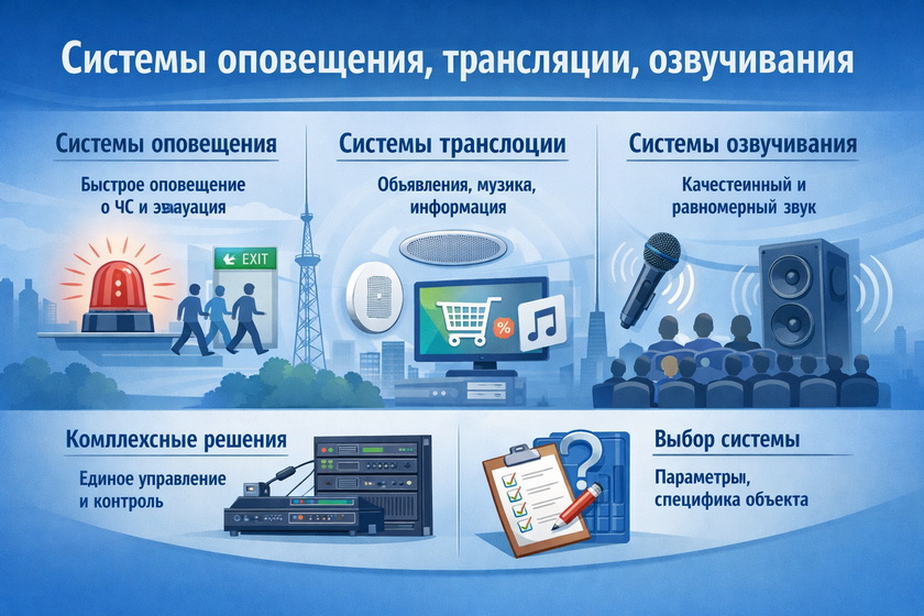 Системы оповещения, трансляции и озвучивания сегодня стали важной частью инфраструктуры самых разных объектов — от офисных зданий и торговых центров до школ, гостиниц, складов и промышленных предприятий. Их задача давно не ограничивается только передачей звука. Такие решения помогают обеспечивать безопасность, организовывать внутренние коммуникации, информировать посетителей и создавать комфортную акустическую среду.